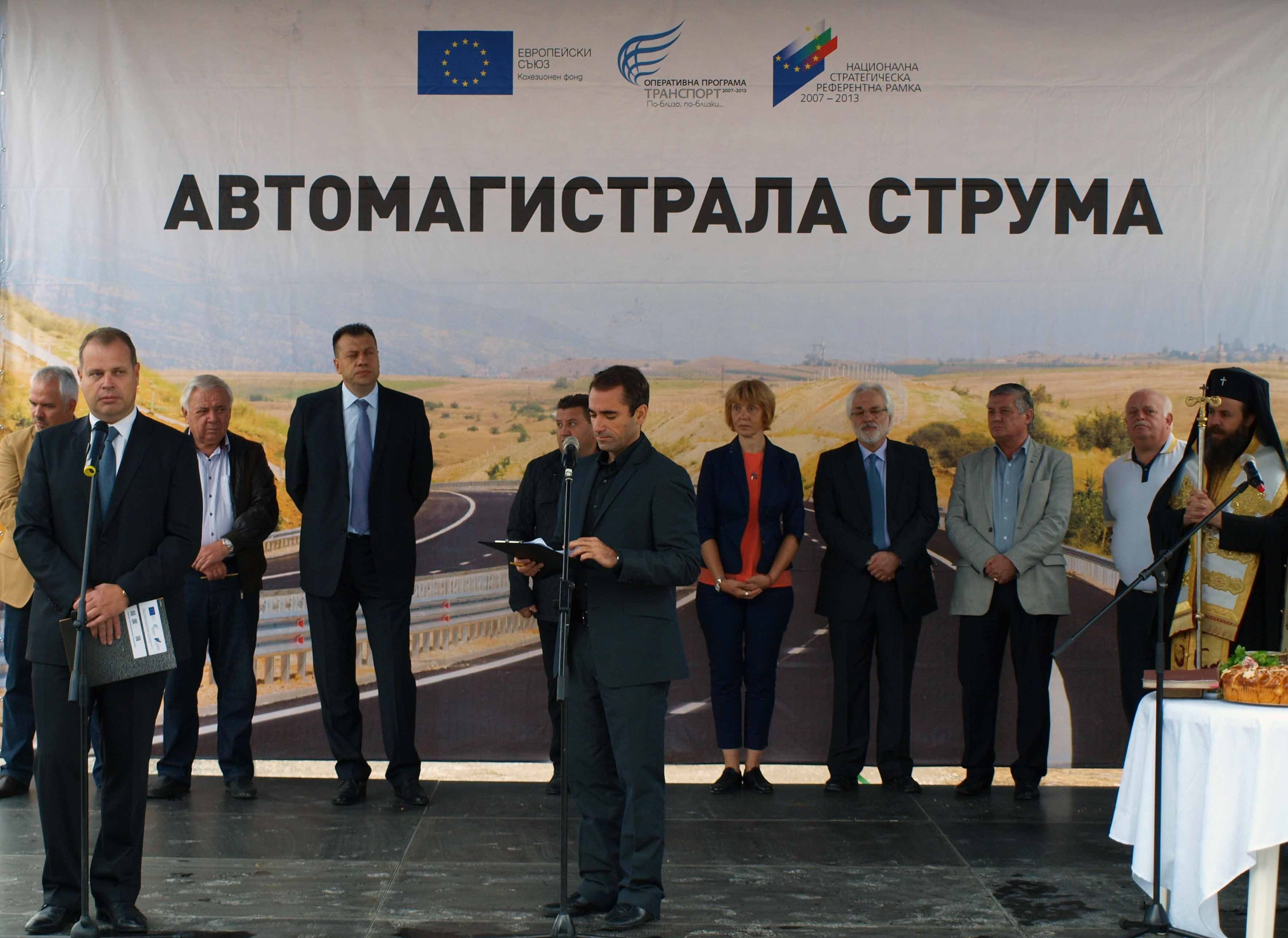 Lot 4 Sandanski – Kulata of Struma motorway from km 423+800 to km 438+500 was officially opened today. The Project is cо-financed by the Cohesion Fund of the European Union and the National Budget under Operational Program Transport 2007-2013.