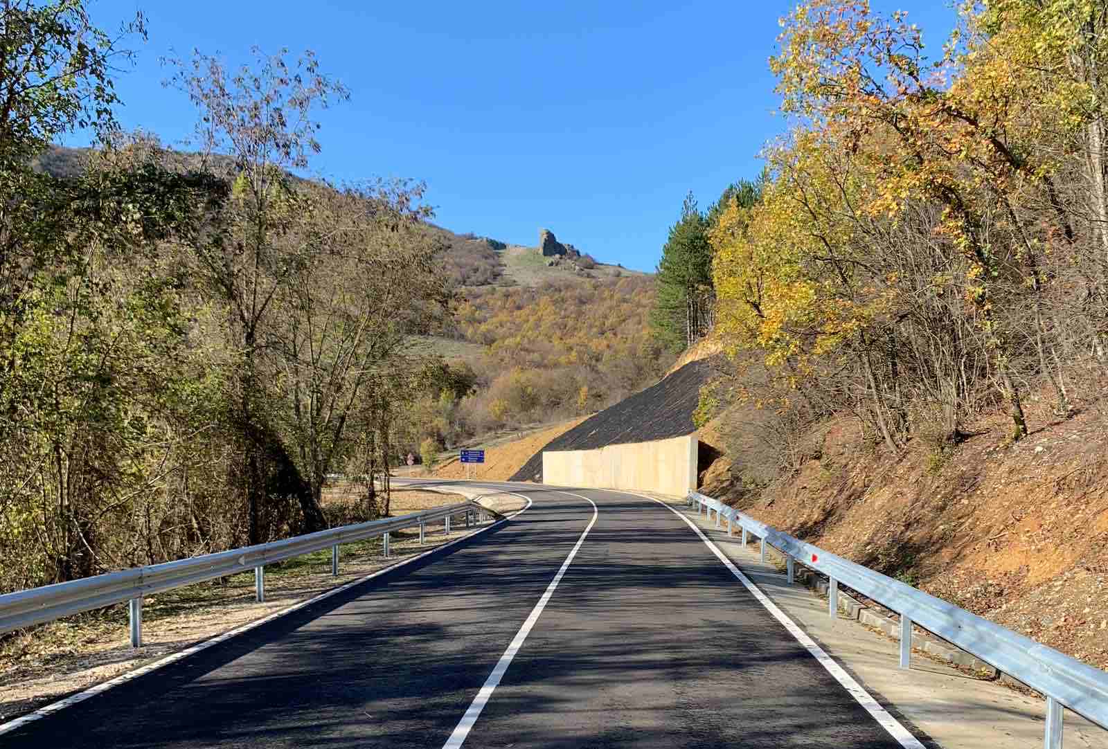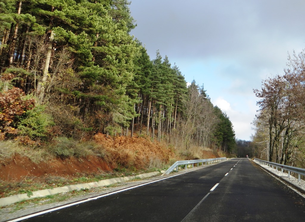 Under the INTERREG VA Greece – Bulgaria 2014-2020 Cross-border Cooperation Program, co-financed by the European Regional Development Fund and the national budget, major repair has been made to 26.4 km. This is the section from the beginning of the town Krumovgrad to the fork for Popsko village. The reconstructed route passes through four settlements – the town of Krumovgrad, the village of Polkovnik Zhelyazovo, the village of Rogach and the village of Pelin. A complete reconstruction of the road pavement was carried out in Krumovgrad. New asphalt has been laid throughout the rehabilitated section, as well as drainage with new concrete curbs, drainage chutes and lined trenches has been fulfilled. All drains have been cleaned and extended and five new ones have been built. New safety systems, road signs and markings have been installed. Near km 41 a reinforced concrete wall is built with a length of 46 m. The slope behind the wall is reinforced by geogrid and humus.